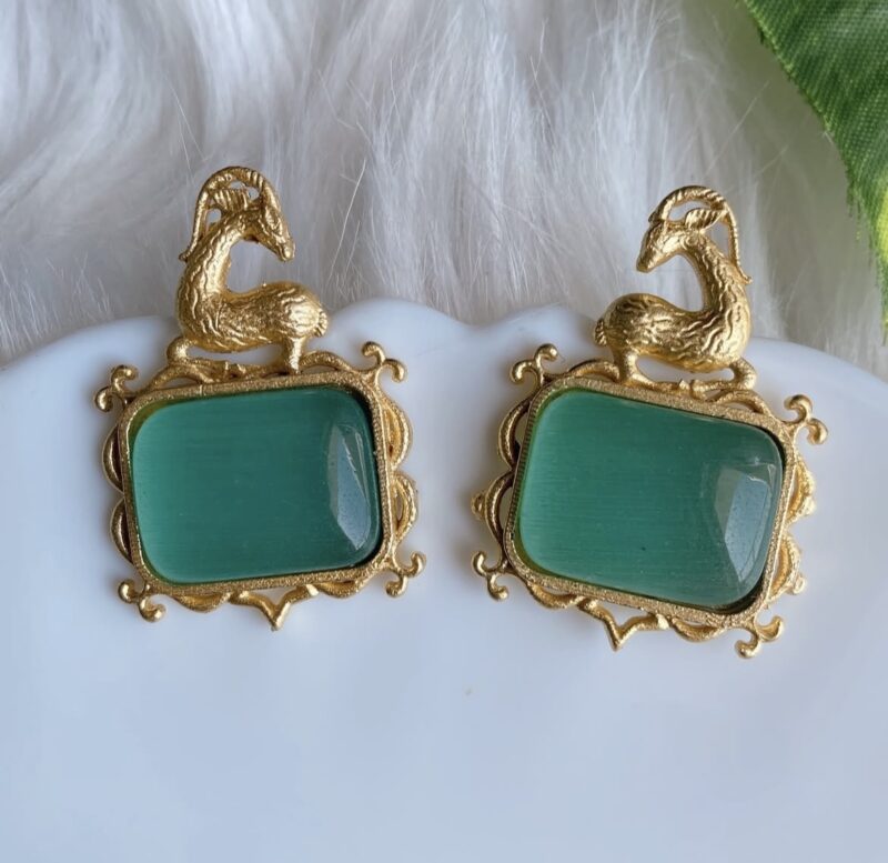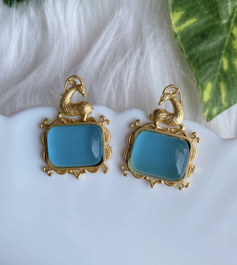 Available in three rich colors — Aqua Blue, Blush Pink, and Emerald Green — these earrings are perfect for adding a touch of regal charm to any outfit.