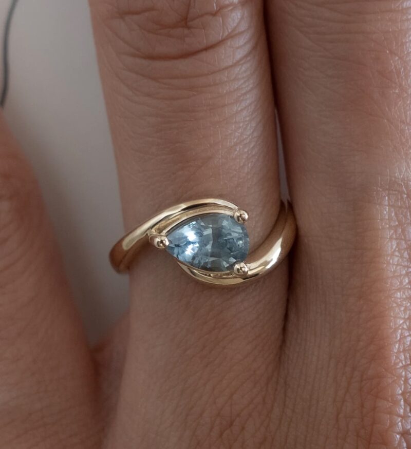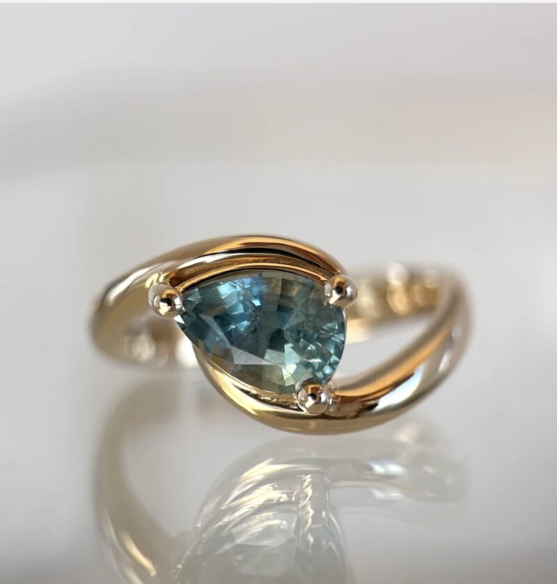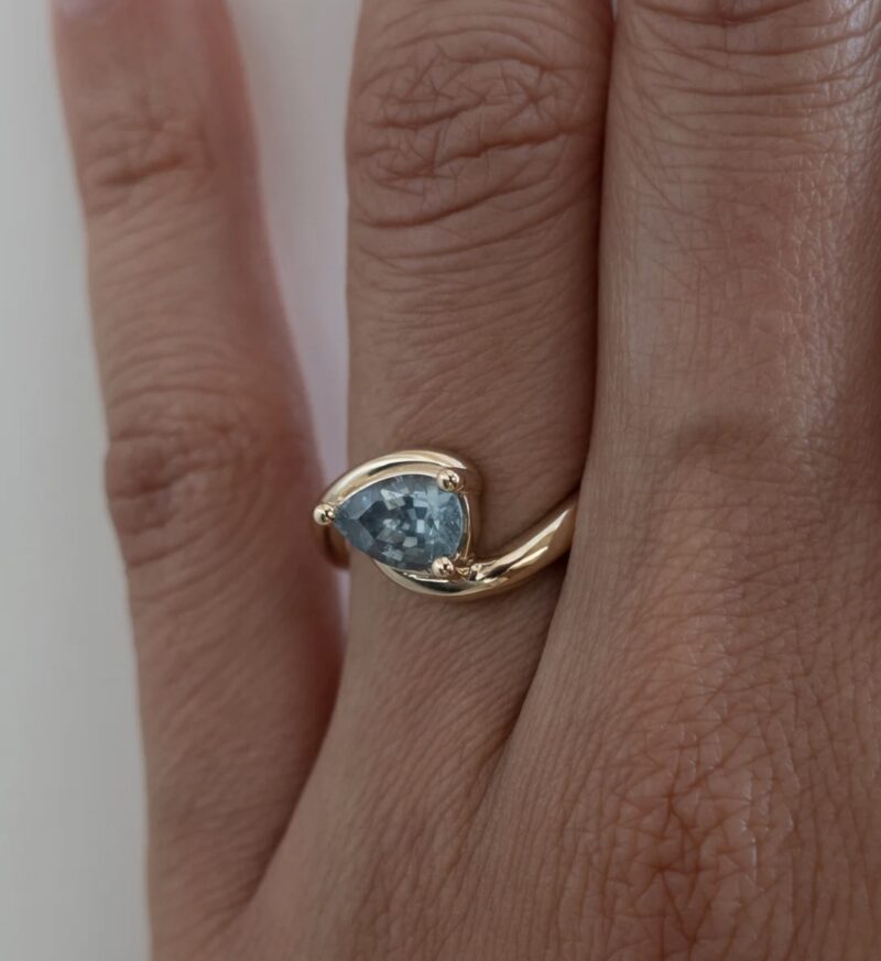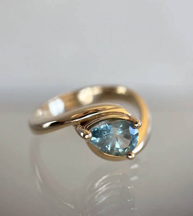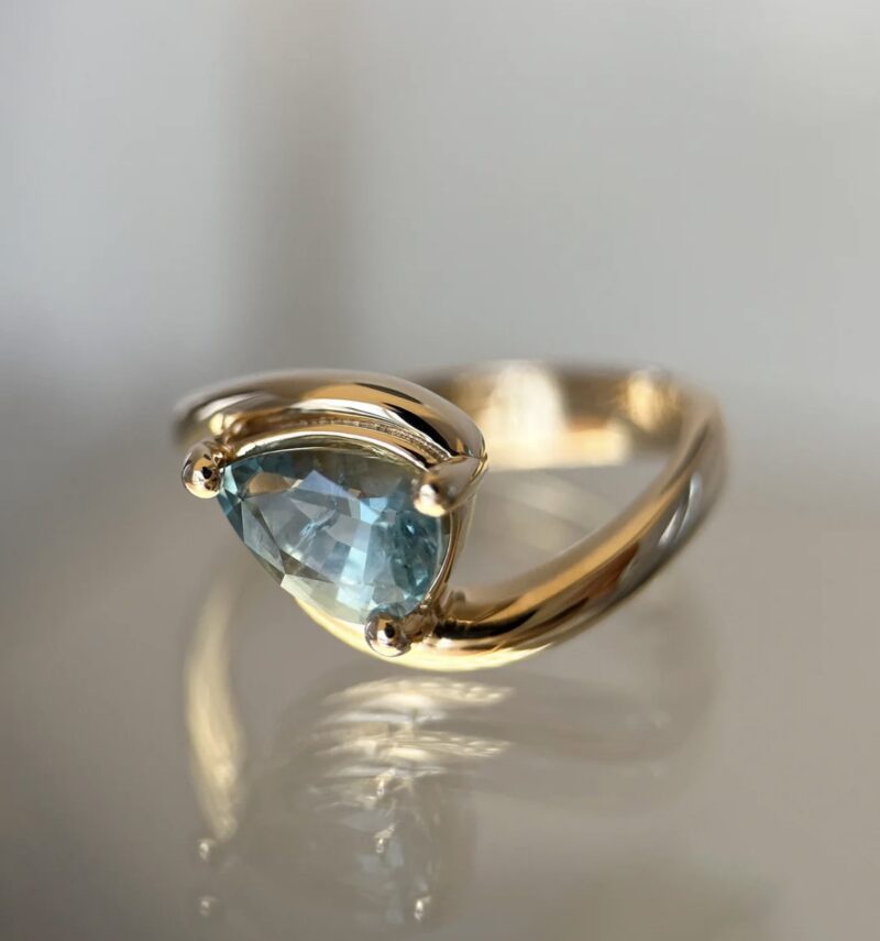 This striking gold ring features a captivating blue gemstone in a contemporary wrap setting, blending bold artistry with timeless elegance. The asymmetric design highlights the gemstone’s vibrant sparkle, making it a standout piece for special occasions or everyday sophistication. Expertly crafted, this ring offers both comfort and luxury—a unique addition to any jewelry collection or a perfect statement gift.
