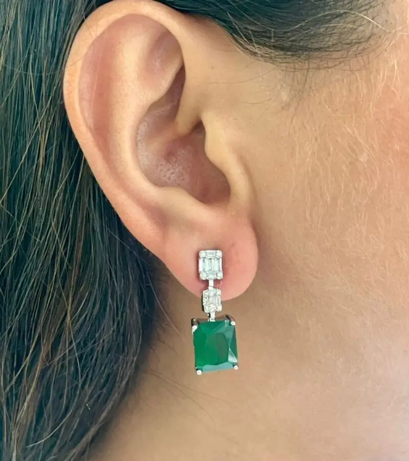 * Stones: High-Grade Diamond-Like CZ & Emerald-Colored Gemstone