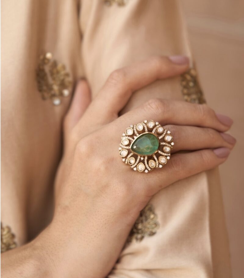Perfect for weddings, festive occasions, or as a thoughtful gift, this ring embodies regal artistry while remaining versatile for both modern and ethnic styles. Its adjustable design ensures a comfortable fit for any finger. Bring home a piece of timeless luxury with this handcrafted beauty – designed to make you shine at every occasion.