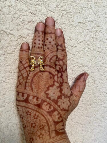 Adorned with sparkling stones and intricate detailing, this ring is perfect for weddings, festive occasions, or as a unique gift for someone special. Its adjustable design ensures a comfortable fit, making it both stylish and versatile.